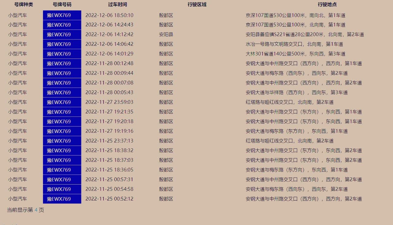 默认只出5页,这5页内容跑了什么路,取决于他平时开车的频率,比如每天都开车的话,5页内容可能仅仅是他几天的记录。如果频率不高,5页的内容可能覆盖了几个月的活动轨迹。车辆轨迹只记录在道路的行驶情况,车辆停靠地点无法直接通过车辆轨迹得出,需要你结合车主的行为逻辑,自己推断。